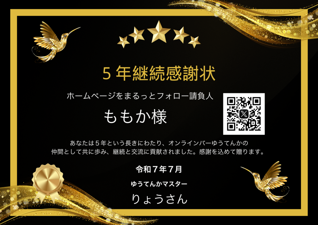 ホームページまるっとフォロー請負人 | ももかさん 〜ゆうてんか5年継続感謝